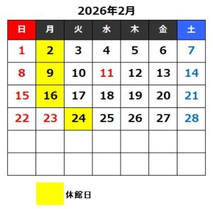 1月・2月の休館日は以下の通りです。